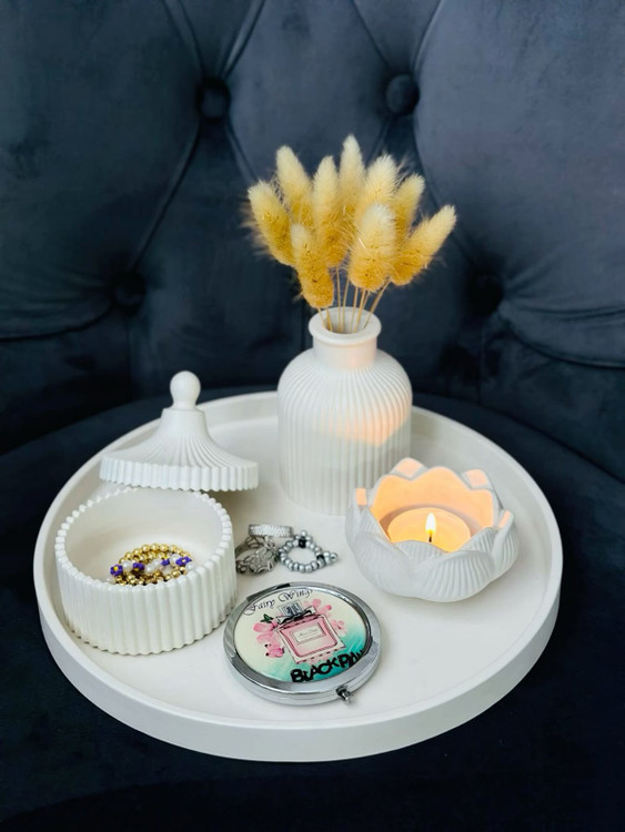 ست سینی،قندان مراکشی،جاشمعی نیلوفر آبی و گلدان مراکشی از جنس سنگ مصنوعی