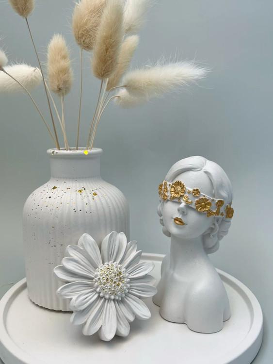 ست زیبای سینی،گلدان مراکشی،مجسمه دختر و گل بابونه